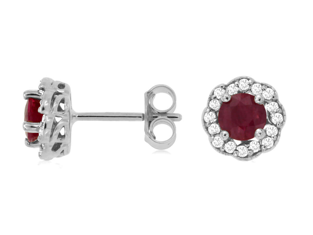 14K White Gold Ruby Diamond Stud Earrings 0.20CT