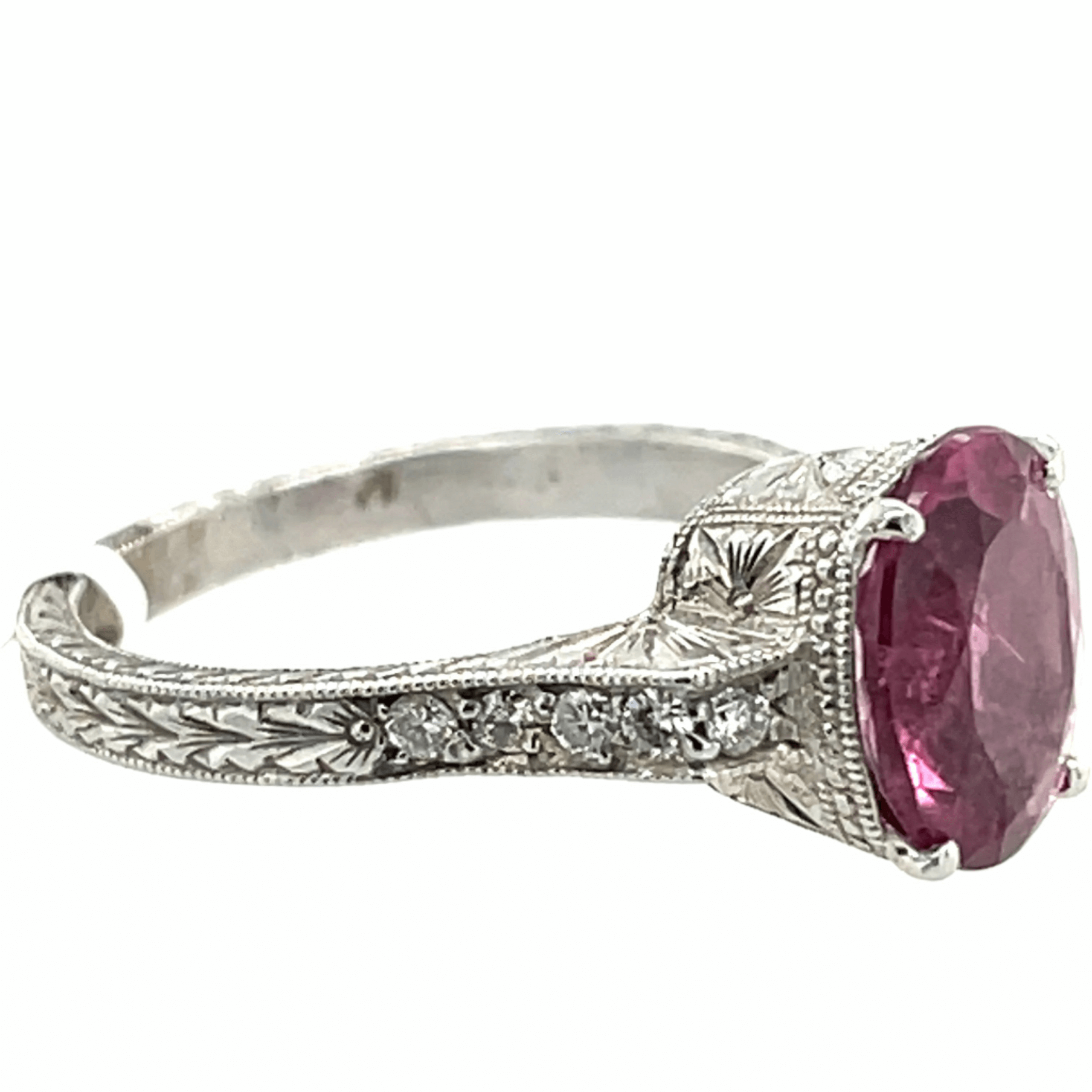 Be the first to review “Vintage 2.22ct Pink Tourmaline & Diamond Ring in 18K White Gold – Size 7”