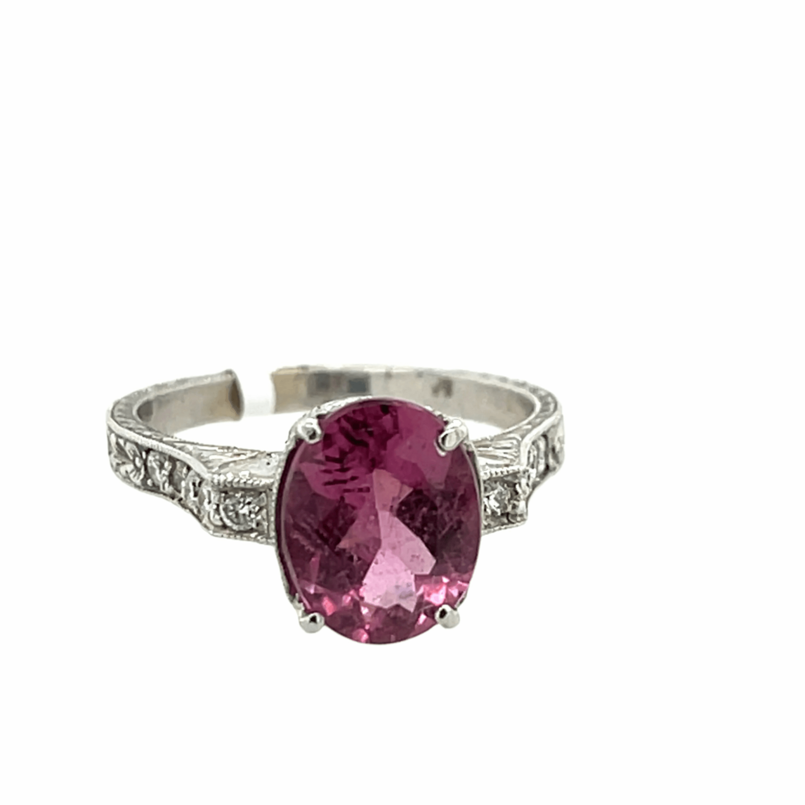 – **2.22ct natural oval pink tourmaline** (romantic rose to berry tones)
